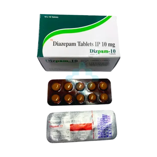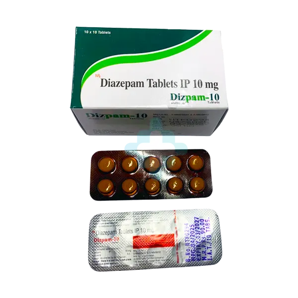 Diazepam Tablets IP 10mg, marketed under the brand name Dizpam-10, are a prescription medication used to treat anxiety, muscle spasms, and seizures. These tablets contain 10mg of Diazepam, a benzodiazepine that enhances the activity of certain neurotransmitters in the brain.
